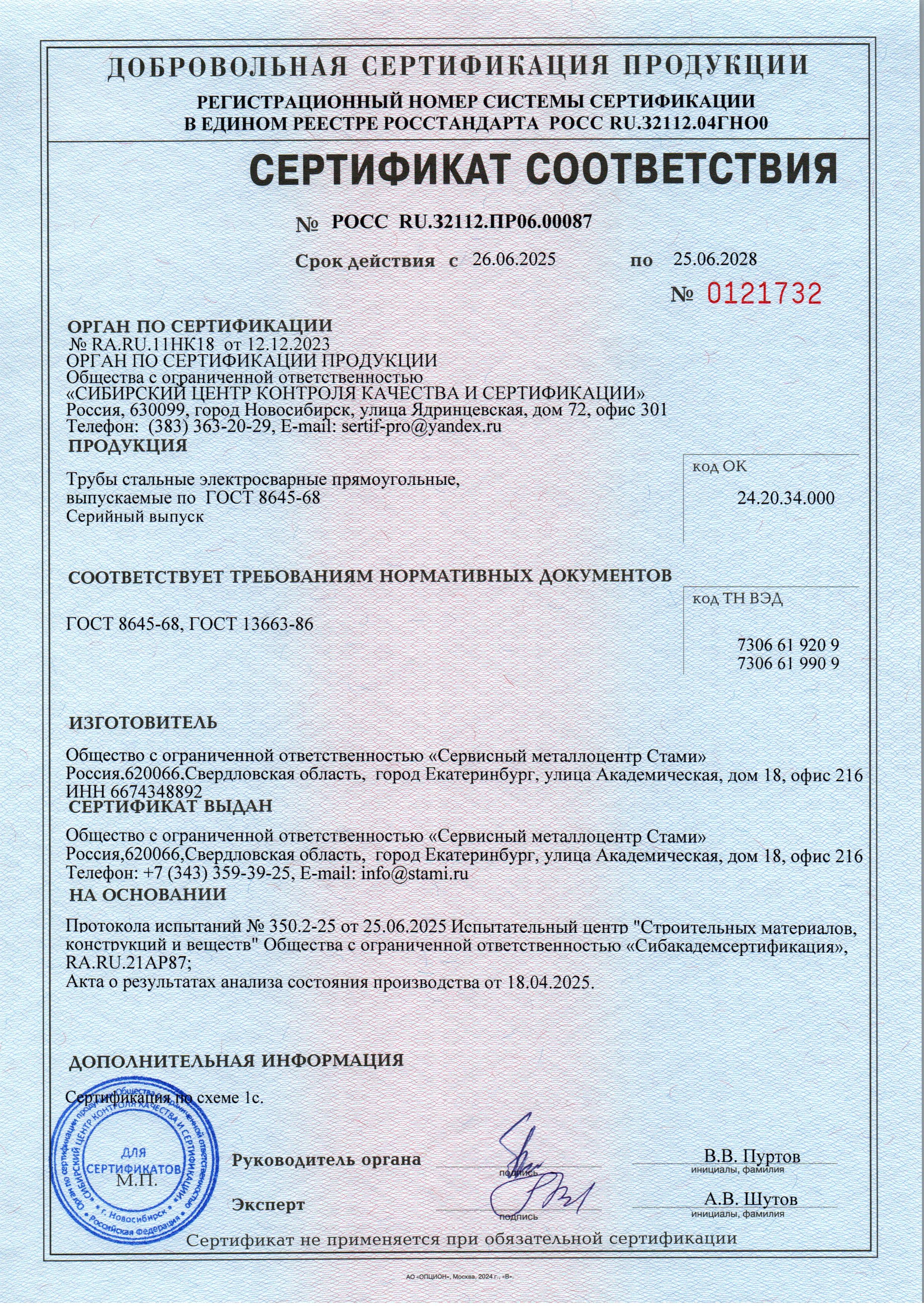 ООО «Сервисный металлоцентр «Стами» производит квадратную электросварную трубу 80 x 80 с высокой точностью резки из металла толщиной 6 мм и длиной до 12 метров. Под заказ труба электросварная 80 x 80 производится оптовыми партиями от 5 тонн. При наличии остатков на складе труба квадратная металлическая 80 x 80 продаётся в г. Орел со склада в Екатеринбурге. Так же электросварная труба 80 x 80 продаётся по оптовым ценам, при значительной партии. Труба квадратная 80 x 80 доставляется автомобильным и железнодорожным транспортом заказчикам Урала, Сибири, Дальнего востока и в другие регионы РФ, а так же Казахстана. Труба квадратная 80 x 80 поставляется на металлобазы партнёров по всей территории РФ для дальнейшей доставки заказчикам в г. Орел.